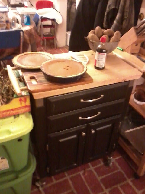 | Kitchen work station, with pie!! |